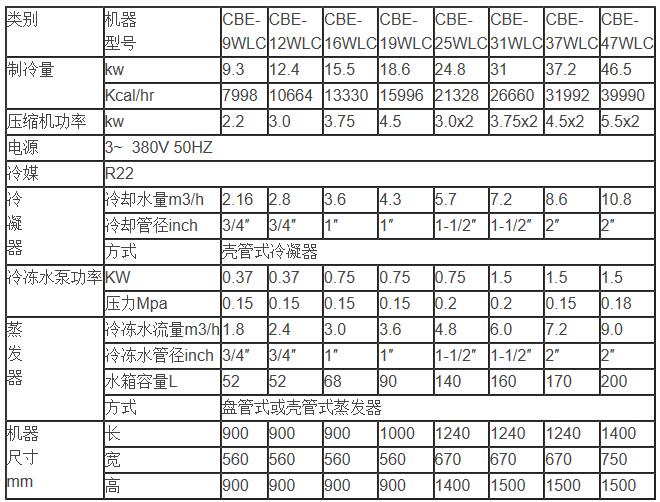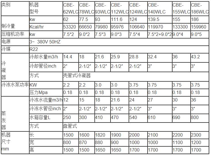皙全箱型水冷式冷水機參數